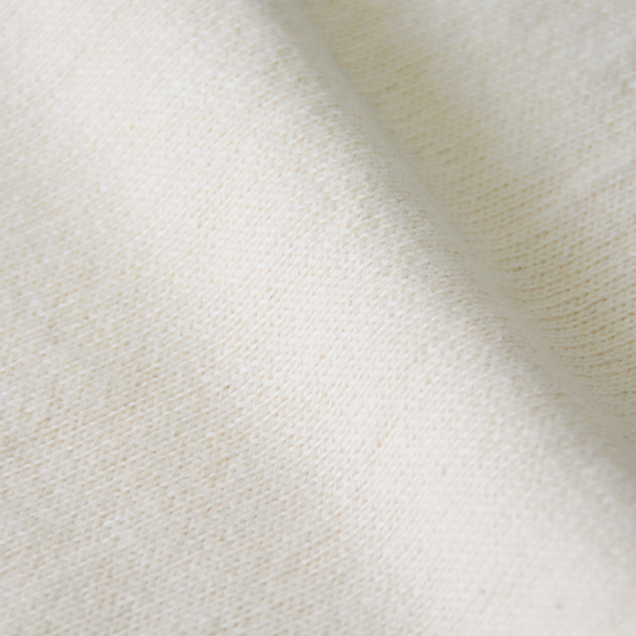 ピーチ起毛とは生地の表面を微起毛させることで、桃の皮のようなソフトな質感を持たせた素材加工を指します。その加工を糸に施すことで、素肌に触れた瞬間にふんわりやさしい肌触りを感じる仕上がりとなっています