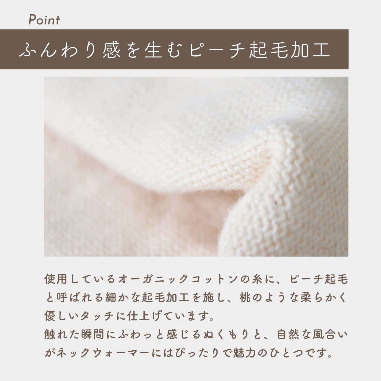 ふんわりとしたピーチ起毛加工を施したオーガニックコットンとヤクのネックウォーマー