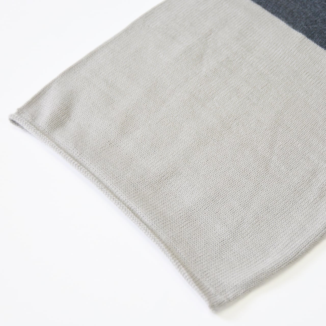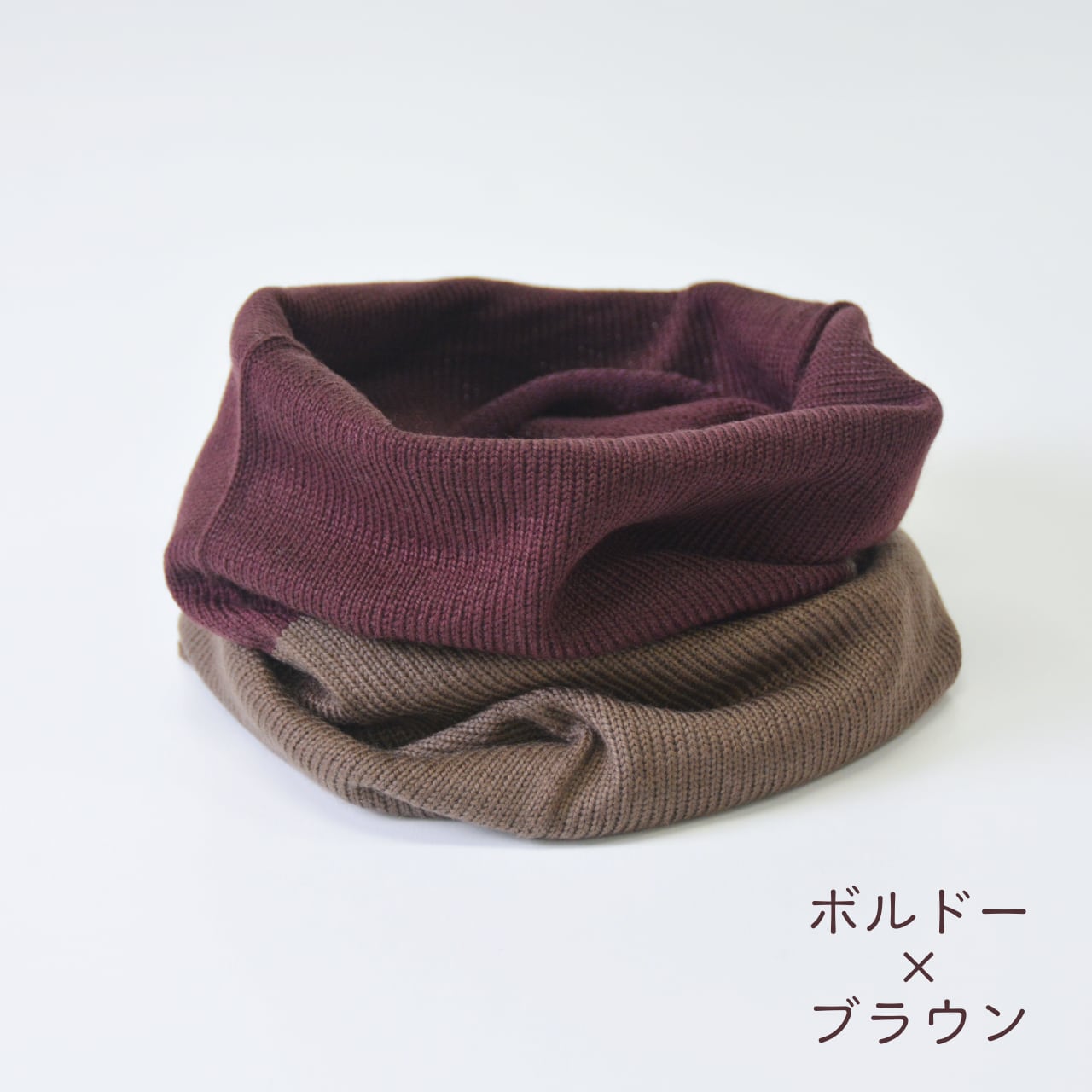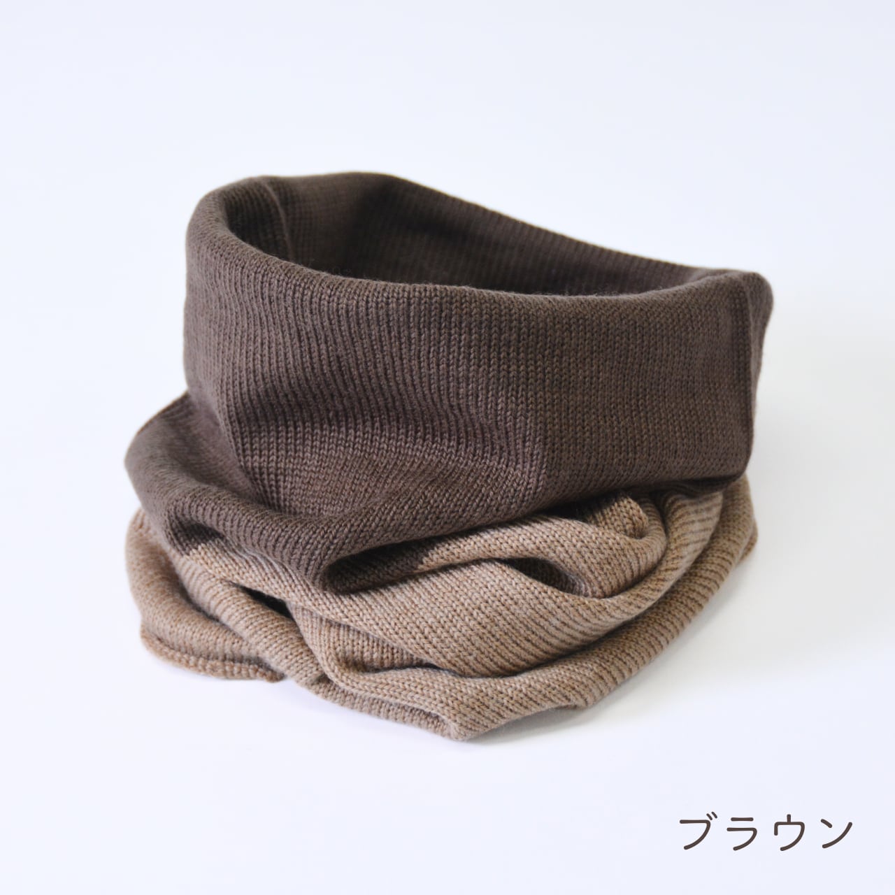 繊維がやわらかいラムウールに、なめらかさと軽さを持つアクリルを組み合わせることで、首元に自然に沿い長時間着けてもストレスを感じにくい仕上がりになっています