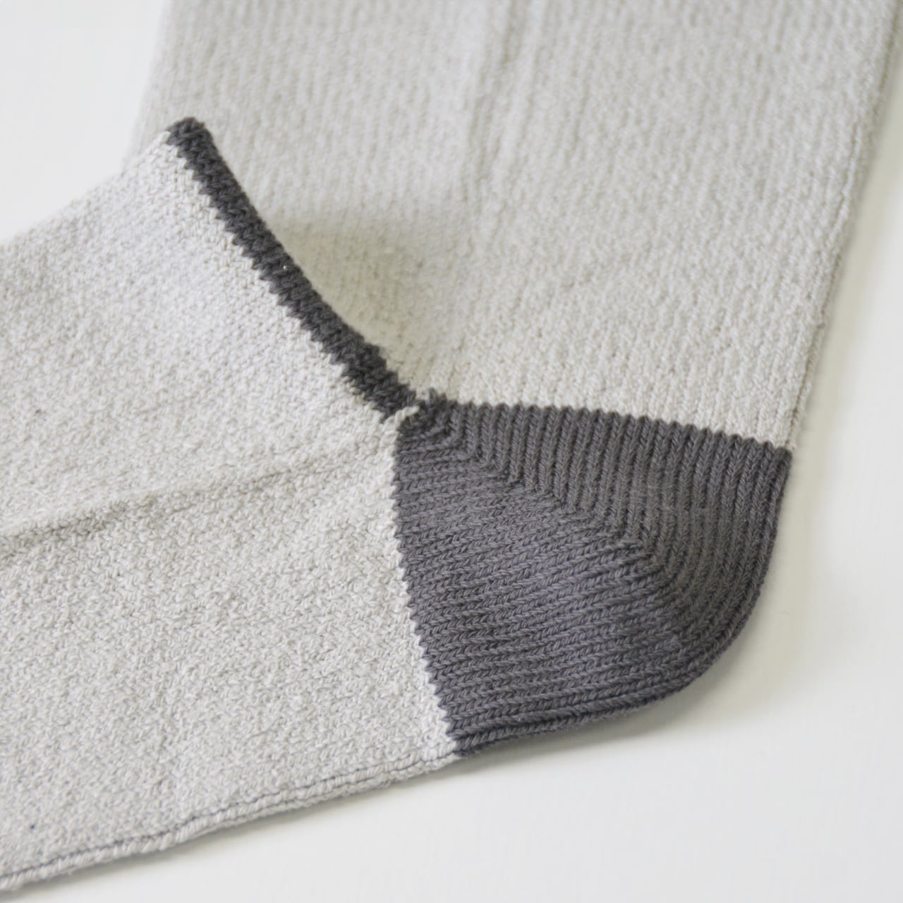 履き始めと終わりにゴム入りのリブ編みが施してあるのでフィット感があります。
