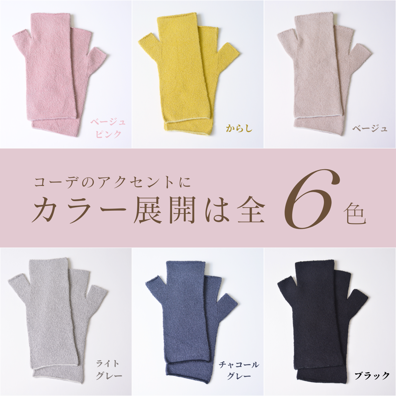 創業69年の撚糸業で培った技術でシルクに伸びる糸を撚糸、独自の糸を使って編み立てたハンドウォーマーはぴったりしていても全く締め付け感のない付け心地を実現しています