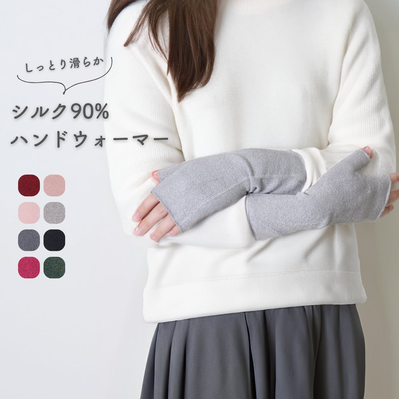 創業70年の撚糸業で培った技術でシルクに伸びる糸を撚糸、独自の糸を使って編み立てたハンドウォーマーはぴったりしていても全く締め付け感のない付け心地を実現しています